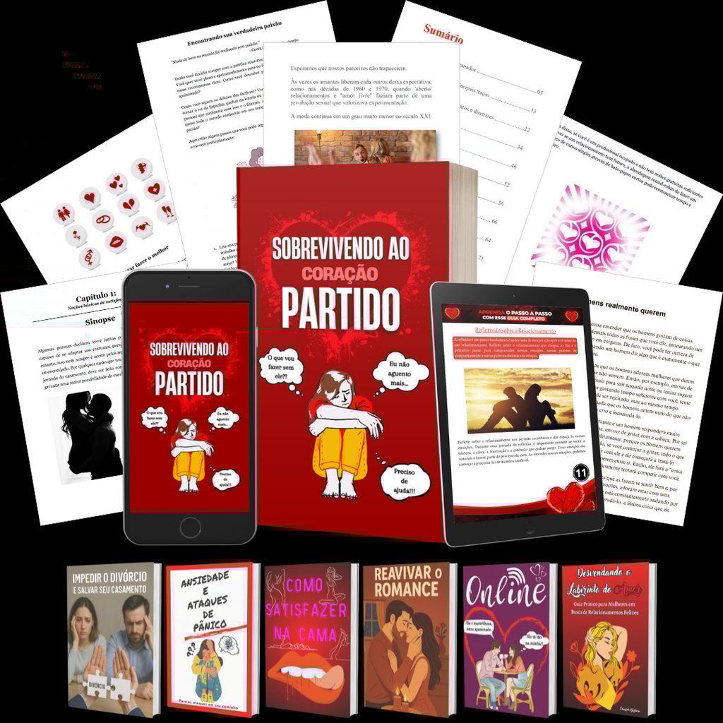 Dentro do guia âSobrevivendo ao Coração Partidoâ, vocĂȘ vai encontrar reflexĂ”es sinceras, ensinamentos prĂĄticos e textos que tocam onde dĂłi â mas curam devagar.