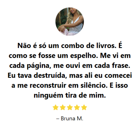 AlĂ©m do livro principal, vocĂȘ vai receber 6 guias complementares pra fortalecer ainda mais seu processo emocional. SĂŁo bĂŽnus que vocĂȘ nĂŁo paga nada por eles, mas que poderiam custar mais do que o valor do livro sozinho.